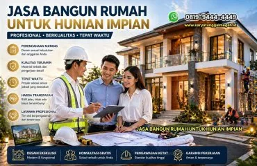 Kami membangun rumah dan bangunan dengan desain modern, struktur kokoh, dan pengerjaan rapi.